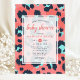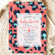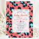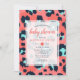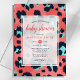 Celebre a chegada iminente com este convite de chuvada de bebê elegante, apresentando uma impressão de animal leopardo estilosa em rosa e marinho. Perfeito para uma chuvada de bebê moderna e trendy, este design combina elementos lúdicos com detalhes elegantes. O padrão ousado e as cores vibrantes tornam-no uma escolha ideal para dar as boas-vindas a uma menina com estilo.