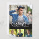 Convite para festa de formatura moderno com uma colagem de fotos de quatro fotos na frente com um título de FORMANDO de traçado de pincel branco na frente e FESTA na parte traseira com seus detalhes de convite para festa de formatura. DICA DA FOTO: Pré-recorte/dimensione as fotos em uma forma semelhante, conforme mostrado ou tenha o assunto no meio ANTES de carregar para obter resultados mais rápidos e fáceis. ALTERAÇÕES: Altere a cor preta do fundo e/ou altere o estilo, o tamanho, a cor ou o posicionamento da fonte de texto clicando em PERSONALIZAR MAIS. Entre em contato com o designer por meio do Zazzle Chat ou makeitaboutyoustore@gmail.com se você quiser que este design seja modificado, em outro produto ou quiser coordenar itens.
