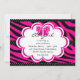 Este convite de aniversário apresenta um impressão de tigre roxo e preto e bolinhas pretas e brancas.