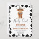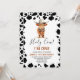 Highland Cowboy Hat Cow Impressão Convite para primeiro aniversario de de Vaca Sagrada Feliz Convite de aniversário para um garotinho com uma linda vaca de planalto vestindo um chapéu de vaqueiro e um padrão de impressão de vaca preto no limite do convite. Este convite para o aniversário de vacas da Highland pode ser utilizado em qualquer idade.