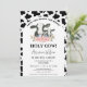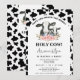 Impressão de Vaca Negra Branca Santa Floral Chá de fraldas de Vaca Convite para o tema Vaca doce Convite para chá de fraldas de leite de vaca doce com um padrão de arco branco e impressão de vaca negra. Este chá de fraldas de vaca sagrada e bonitinho apresenta também uma vaca e um vitelo preto e branco, bem como um arranjo floral azul e rosa. Ideal para alguém que procura um convite de chá de fraldas de vaca sagrado moderno.