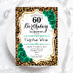 60º Convite de aniversário. Elegante design verde-esmeralda floral com ouro e rosas brilhantes falsos. Apresenta a impressão e a letra de um animal de chita leopardo. Perfeito para uma comemoração de dia das mulheres na moda. Pode ser personalizado para qualquer idade! Impressos convites Zazzle ou modelo de impressão digital instantânea para download.