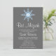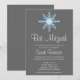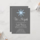 Um convite de Bat Mitzvah, floco de neve azul e cinza. Mostrado em cinza, branco e azul. Personalize facilmente com os detalhes do seu partido.