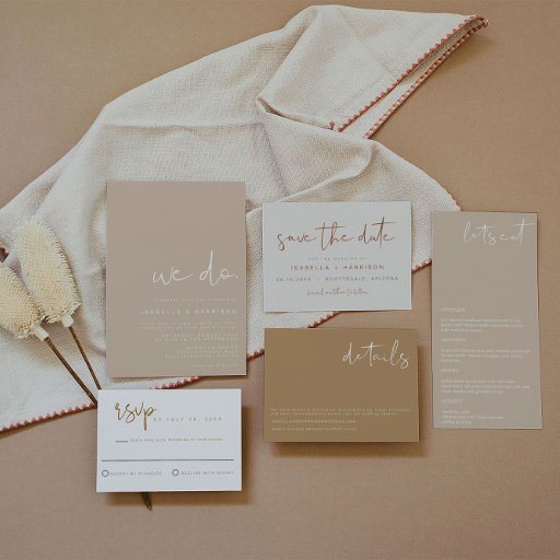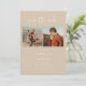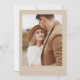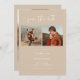 Este casamento de fotos salvou o cartão de data com uma fonte elegante escrita à mão e um design moderno minimalista em uma combinação boho beige e branco com três slots de fotos - dois na frente e um na parte traseira. Edite o texto *maioria* e todas as cores para corresponder ao seu tema. Esta salva de data é a adição perfeita ao seu convite de casamento boho, moderno ou contemporâneo.