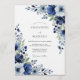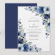 An elegant arrangement of indigo and white blooms cascades across this design. Deep blue and soft white petals mingle with lush green foliage, creating a sophisticated and romantic atmosphere.