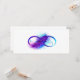 Símbolo infinito com uma bela pena pintada em cores roxas e azuis brilhantes sobre fundo branco.