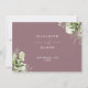 Um cartão de informações de detalhes de casamento floral verde folhagem malva elegante personalizado com seus detalhes especiais em tipografia estilosa e seus nomes e data de casamento no verso. Projetado por Thisisnotme