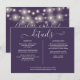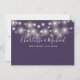 Um cartão de informações de detalhes de casamento roxo elegante com lindas luzes de corda. Personalize com os detalhes do seu evento especial em tipografia elegante com seus nomes e data de casamento no verso. Desenhado por Thisisnotme©