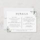 A cor d'água elegante é uma vegetação botânica natural com coordenação de cor verde esmeralda. Cartão de modelo de informações de detalhes de casamento. O modelo fornece várias linhas para suas informações detalhadas. Incluindo recepção, alojamento e sítio Web.