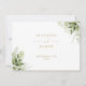Um cartão de informações de detalhes de casamento floral verde elegante personalizado com seus detalhes especiais em tipografia dourada estilosa e seus nomes e data de casamento no verso. Projetado por Thisisnotme©