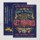 Transforme seu casamento em uma longa e estranha viagem com esses convites de festa que apresentam sua própria banda. Feitos para se parecer com um logotipo de rock / anúncio de show dos anos 70, esses convites exclusivos incluem uma árvore, rosas, leões majestosos, uma coroa, peixes, asas, guitarras e uma âncora. O verso é feito para se parecer com um ingresso de show. Todo o texto pode ser facilmente alterado através dos modelos, exceto "Case-se" na frente. Entre em contato com a HaHaHolidays para obter ajuda ou alterações personalizadas mais detalhadas.