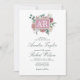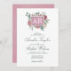 Um convite elegante com as iniciais da noiva e do elemento quadrado dentro do noivo rodeado por florescências dolorosas em tons de rosa e marfim, tudo num fundo branco nítido. A placa se reverte para um tom quente de rosa empoeirado. Você pode personalizar com seus detalhes indo para o menu personalizar. Isto é parte de uma linda suite de casamento com muitos elementos correspondentes
