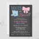 Botas e arcos bonitos são convites de festas. Um gênero do país revela um tema com um arco rosado e botas azuis de cowboy em um fundo de chalkboard. Personalize facilmente com seus detalhes de eventos.