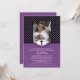 Comece o seu evento com o nosso elegante convite da Primeira Comunhão. O convite apresenta um enquadramento cruzado num quadro de ornamentado definido num fundo de bolinhas roxo e preto. Fácil de personalizar, basta adicionar suas informações de fotos e eventos e você está pronto para ir.