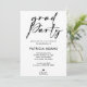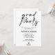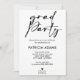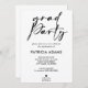 Convite para modelo de festa de formatura de de de moderno com script de tipografia com letra manual que diz "festa de formando". Há uma ilustração de uma moda preta ao lado dela. Excelente para segundo grau e formando universitário.