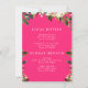Inserção do Convite de aniversário Floral Branco. Texto branco. Fundo Rosa Quente. Opções de Hotéis e Brunch.
