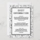 Uma inserção para um casamento ou convite de evento para informações de convidado. O design consiste em uma simples borda floral em uma paleta de cores preto e branco.