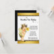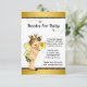Cartões de chá de bebê 'traga um livro' com uma linda bebê morena usando um adorável traje de abelha em um lindo fundo preto e dourado com abelhas voando. Você pode personalizar esses cartões de inserção de chá de bebê 'traga um livro' com seus detalhes no estilo de fonte e redação de sua escolha.