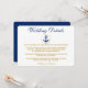 Cartão de Inserção de Detalhes do Casamento Dourado Azul Náutico