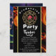 Convite de Festa de Graduação de Bombeiro com Chamas de Fogo Laranja e Vermelho Insígnia de Bombeiro Seus anúncios e materiais promocionais terão uma aparência profissional nítida neste cartão de convite liso Altere o texto para o que desejar .