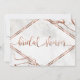 Chá de panela de casamento | Modern Copper & Marble Wedding Inspiration Original Design pelo BarefootBride™ - O Casamento é Sutil E Negrito ao mesmo tempo - Temos um belo mármore italiano com veias falsas de cobre espantoso - a caligrafia moderna também é feita em cobre texturizado. Isto é parte de um Conjunto de Casamentos de Combinação. Esta é a tendência para os Casamentos de 2018! A coisa única sobre esta design em particular é que você pode mudar a cor de fundo o que lhe dará alguns efeitos únicos como ele mostrará através do translúcido mármore italiano mostrando a sutil textura do mármore mas em uma nova cor. A estrutura geométrica também é bordada em cobre e também é translúcida e dá uma leve aparência de cobertura ao resto do design. Experimente-o sozinho escolhendo "Clique para personalizar mais" e depois uma cor de "Selecione uma cor de fundo". Você também pode colocar um número hexadecimal real escolhendo 'Mostrar Seletor de Cores' para uma correspondência exata de cores.