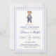 Celebrate the upcoming arrival of your baby boy with this timeless preppy baby shower invitation. The design features an adorable watercolor teddy bear dressed in classic blue, paired with a crisp navy striped border that brings to mind the clean, polished style of At the center, your personalized event details are displayed on a bright white background, with a refined combination of script and serif fonts that make the text both elegant and easy to read.