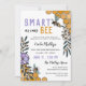 Convite à festa de formatura Floral para uma festa de formatura com o tema "Abelhas Inteligentes Como Podem", juntamente com o mel, abelhas e flores bonito em roxo e branco. Adicione uma foto ao fundo. O convite para festas de formatura para uma festa de formatura pré-escolar personalizada com uma foto no verso. Convite para comemoração do jardim de infância com abelhas produtoras de mel.