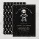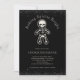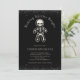 Convite divertido de intercâmbio de biscoitos de Natal gótico com homem de gengibre esqueleto e a frase 'Baking Spirits Bright'. Há um toque de brilho preto no topo e na parte inferior também! Adicione as informações da sua festa de troca de biscoitos ao convite. Padrão de esqueleto no verso (ou remova para preto liso. Veja itens coordenados em nossa loja, Enchanted Finch.