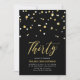 Celebre seu dia especial com este convite de festas mínimo de aniversário de 30 anos. Este design apresenta um script de na moda com letra "Trinta" com um confete em forma de hexágono com uma combinação de cores preto e dourado. Mais designs disponíveis no meu compro BaraBomDesign.