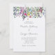 Elegante e bonito este convite floral de flor silvestre tem flores silvestres no topo do convite com belo escrevendo de caligrafia com letras finas. As flores silvestres de aquarela são delicadas e pintadas à mão em lindas cores. A textura falsa de papel aquoso realmente os faz se destacar e adiciona um toque extra de riqueza. Veja a coordenação de itens no nosso compro, Encantado Finch.