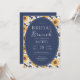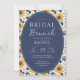 Girassóis russos e elegantes em amarelo contra um convite de chá de brunch marinho azul. O chá de panela pode ser personalizado para incluir os detalhes do seu chá de panela. O convite para o chá de brunch bridal pode ser utilizado em qualquer estação do ano, embora possa ser apreciado especialmente durante o outono ou outono.