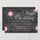 Um convite de aniversário temático do one-derland adorável do inverno. Mostrado no quadro cinzento, no rosa e no branco. Personalize facilmente para seu partido!