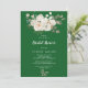 Este floral de inverno no chá de panela verde esmeralda é perfeito para um chá de casamento de Natal elegante. O simples design apresenta flores brancas com verde-inverno e folhas de eucalipto, com um sentimento moderno do país.