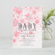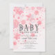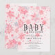 Lindo convite de chuveiro de bebê de aquarela de inverno rosa e flocos de neve prateados para o chuveiro de uma menina. Vire nosso convite para ver uma parte de trás coordenada para um toque extra especial.
