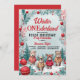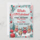 Abrace a magia da estação e comemore o seu primeiro aniversário com o nosso encantador Convite de aniversário de inverno ONEderland! Transportem seus hóspedes para uma terra maravilhosa de inverno onde o ar está cheio de alegria e entusiasmo. A design apresenta um delicioso fundo de neve adornado com uma borda inspirada no Natal, cheia de folhas de neve, bagas ocas e ornamentos vermelhos vibrantes. Nosso toque bonito e brincalhão vem à vida com animais ilustrados — urso polar adorável, burro encantador, raposa cártica branca, e pinguim adorável — todos fazendo capuzes confortáveis com formigueiros cercados em cima. Eles ficam em uma cama de neve, adicionando um pouco de doçura à celebração. A paleta colorida de vermelho vivo, verde-floresta, branco e laranja queimado claro cria uma atmosfera festiva que captura perfeitamente o espírito do inverno. O tema "Winter ONEderland" dá o tom para uma celebração mágica, e o convite é feito para evocar sorrisos e sentimentos calorosos. É a maneira perfeita de juntar amigos e família para uma ocasião alegre. Torne o primeiro aniversário do seu filho muito especial com este belo e doce convite. Peça agora e deixe as festividades de inverno começarem!