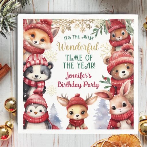 Winter Wonderland Cute Winter Animals Birthday Criado por H-Art Studio Design