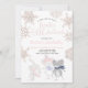 Seu bebê está completando um ano! Convide seus convidados especiais para uma mágica celebração Invernal com este convite fofo e moderno do tema Onederland Invernal com flocos de neve, apresentando flocos de neve com brilho dourado-rosado, ilustrações de ratinhos e coelho fofos, e tipografia de letras manuscritas. O verso do cartão apresenta um padrão de flocos de neve rosa com flocos de neve em rosa, brilho prateado e brilho dourado-rosado. Entre em contato com o designer para obter produtos combinando. Copyright Anastasia Surridge Designs: Elegant Invites, todos os direitos reservados.