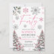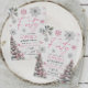 Quarenta convites de aniversário com flocos de neve rosa e prateada e pinheiros. Ideal para a sua 40ª festa de aniversário de inverno.