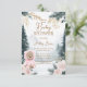 Dê as boas-vindas aos convidados para uma deliciosa celebração com este convite de chá de bebê do urso da floresta cor-de-rosa, perfeito para homenagear a futura mamãe. Com um adorável urso vestido com um traje cor-de-rosa aconchegante em meio a um cenário encantador de pinheiros e sutil decoração floral, este convite captura a essência de uma terra encantada de inverno. O design é acentuado com ilustrações delicadas em aquarela em tons de rosa e verde, criando uma atmosfera calorosa e caprichosa. Personalize com todos os detalhes do evento e defina o tom para um chá de bebê doce e memorável com este adorável convite.