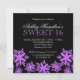 Convites Inverno roxo do doce 16 dos flocos de neve da