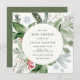 O Elegante convite para chá de fraldas no tema Winter apresenta um quadro de ouro rodeado por cor d'água evergreen e pinho. Personalize com suas informações ou clique em "Clique para personalizar mais" para editar estilos de fonte, tamanho e cores.