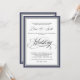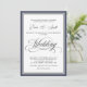 Um convite de casamento maravilhosamente elegante, com destaque de texto de escrita de caligrafia com uma borda em azul marinho ao redor do seu texto. O estilo simples e saboroso funciona bem para casamentos em todas as estações. Os cartões RSVP correspondentes e outros produtos de casamento estão disponíveis neste design. Este convite é uma escolha perfeita se você está procurando por algo clássico e tradicional em preto e branco com um pequeno toque de cor para corresponder ao seu tema de casamento.