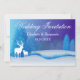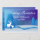 Elegante Blue Winter Snow Landscape Weditation Contém com neve, cervo, pinheiro, tipografia de na moda e modelo de mensagem de casamento moderna em fundo azul e branco. O verso da placa tem um lindo fundo azul gelado Um design perfeito para o tema rústico, Natal e casamento no inverno.Clique no botão personalizar para personalizá-lo em seu próprio texto.