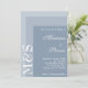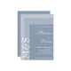 Simples e moderno roteiro de chic convite para noivas que estão adorando suas cerimônias em azul empoeirado. Tudo definido em uma fonte branca moderna com iniciais laterais.