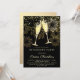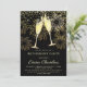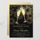 Um convite de festas de aposentadoria com óculos de champanhe, balões e brilho de ouro, ouro a preto. Folha de ouro falsa na parte de trás do convite.