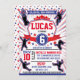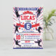 Prepare-se para comemorar a próxima festa de aniversário de Ninja com este convite temático do "Guerreiro Ninja Americano". **Este design tem um padrão de estrelas traseiras. Apresentando silhuetas azuis, brancas e vermelhas e masculinas em ação no curso de Ninja! O design traseiro também está disponível para uso. Projetado por invitecentral.com