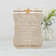 Uma design de casamento russa na praia, com estrelas românticas, gêmeos e cadarços brancos em fundo de canvas de linho. É sobre amor, romance e humor natural, country. Todos os itens desta coleção podem ser personalizados para o seu evento especial e adicionariam um toque único a qualquer casamento rústico, chá de panela, festa de noivado, festa de aniversário ou qualquer outra celebração que você queira. Todos são impressos, portanto, não possuem canvas de linho e materiais de rendas. Use a ferramenta Personalizar para adicionar todas as informações necessárias, alterar fontes, cores. Abaixo você pode ver outros itens que correspondem a este design. Veja "Rustic Beach Starfish Lace Wedding Collection".