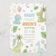 Haga que su pequeño cumpleaños sea inolvidable con esta adorable invitación a los dinosaurios acuarelas. Con dinosaurios de bebé pastel, globos, hojas tropicales, palmeras, huevos, flores y confeti festivo, este diseño lúdico crea el tono perfecto para una divertida celebración con temática de dino. Personalice con el nombre, edad, fecha, hora y detalles del fiesta de su hijo. Ideal para niños y chicas que adoran los dinosaurios y los adorables temas fiestas pastel.