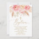 Baptism Floral pink Boho Pampas Girl Invitation