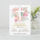 Esta es una invitación de bautizo sofisticada, elegante y minimalista. Con diseño Flores em tonos rosas y dorados.
